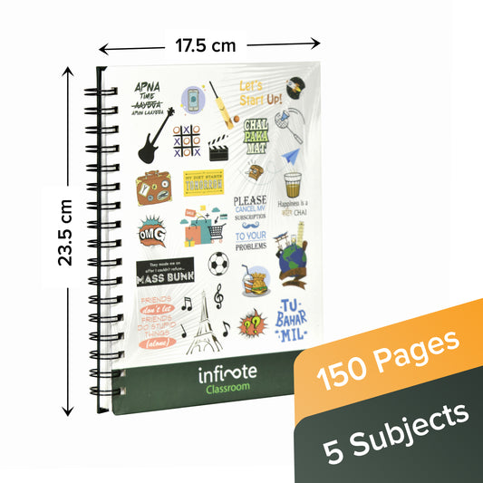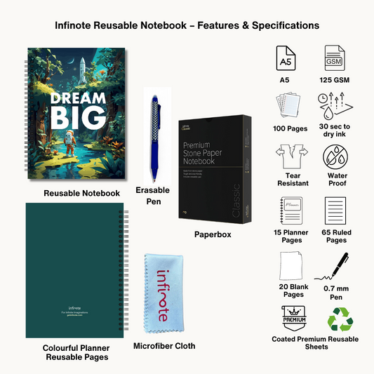 Infinote Classroom 5 Subject Reusable Stone Paper Smart Notebook - Includes 1 Erasable Pen