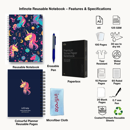 Infinote Unicorn Happiness Colourful Reusable Planner A5 size